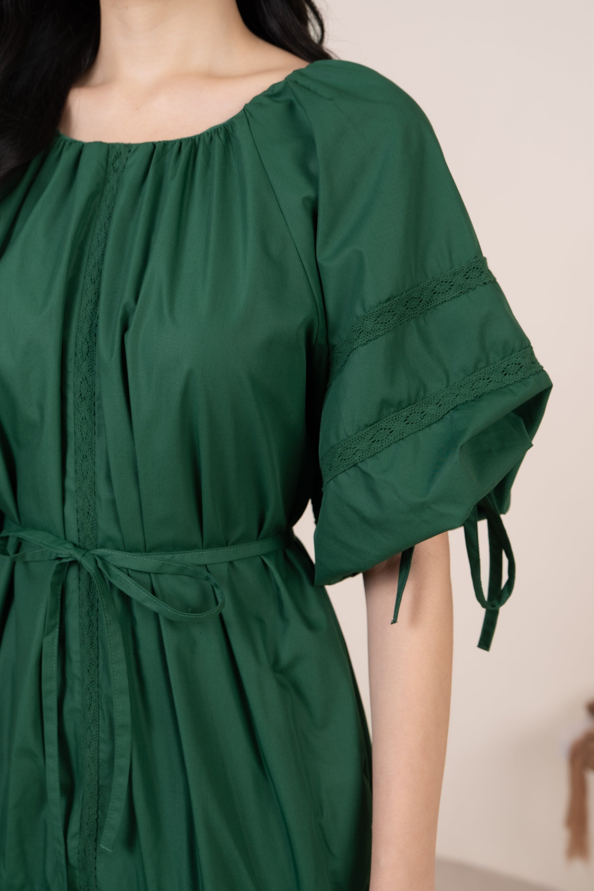 - Self-tie ribbon at sleeves