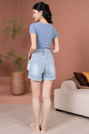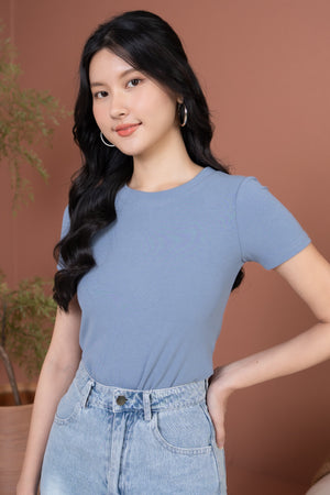 Basic Ribbed Tee in Blue